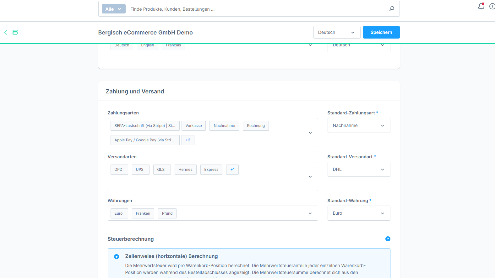 Die Versanddienstleister DHL, DPD, Hermes, GLS und UPS sind in unseren Shop integriert. Die Versandkosten werden automatisch basierend auf dem Gewicht der Bestellung, dem gewählten Versanddienstleister oder dem Zielland berechnet und im Bestellprozess angezeigt. Eine detaillierte Übersicht der Versandkosten findest du unter „Einstellungen > Versandarten“.