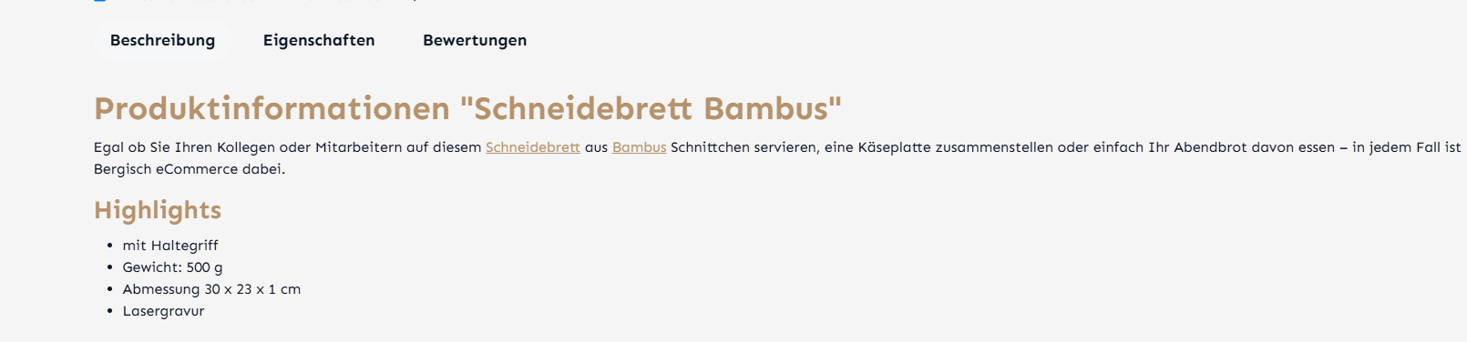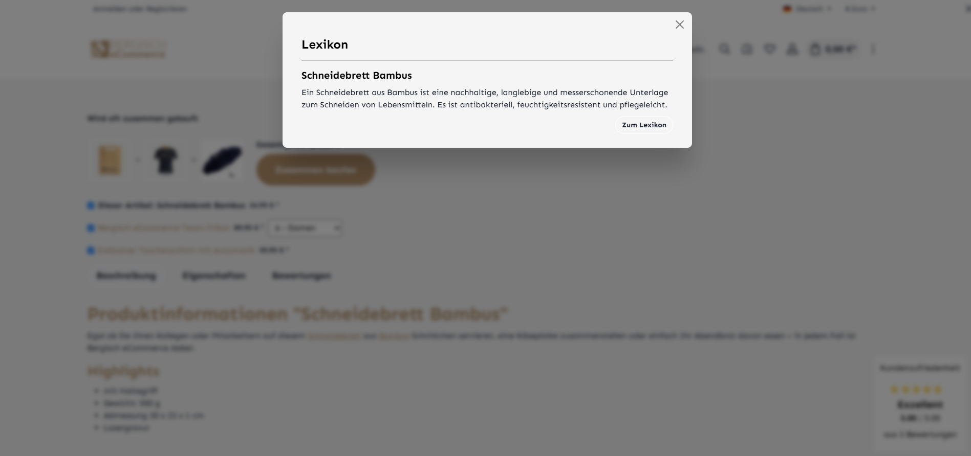 Der neue Lexikon-Eintrag wird nun in deinem Shop verknüpft. Dadurch werden die Keywords automatisch auf der Produktseite und in anderen Bereichen des Shops verlinkt.