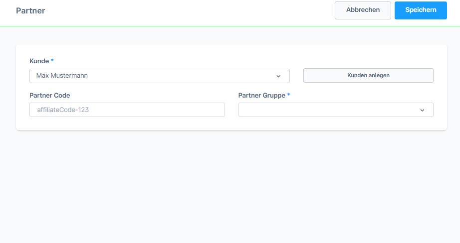Unter dem Tab „Partner“ findest du eine vollständige Übersicht aller Affiliates. Diese Liste zeigt alle Partner, unabhängig davon, ob sie aktuell ein Provisionsguthaben haben oder nicht. Um einen Partner anzulegen, musst du im Bereich Marekting -< Affilate System einen neuen Partner anlegen und einen Affilatecode vergeben.